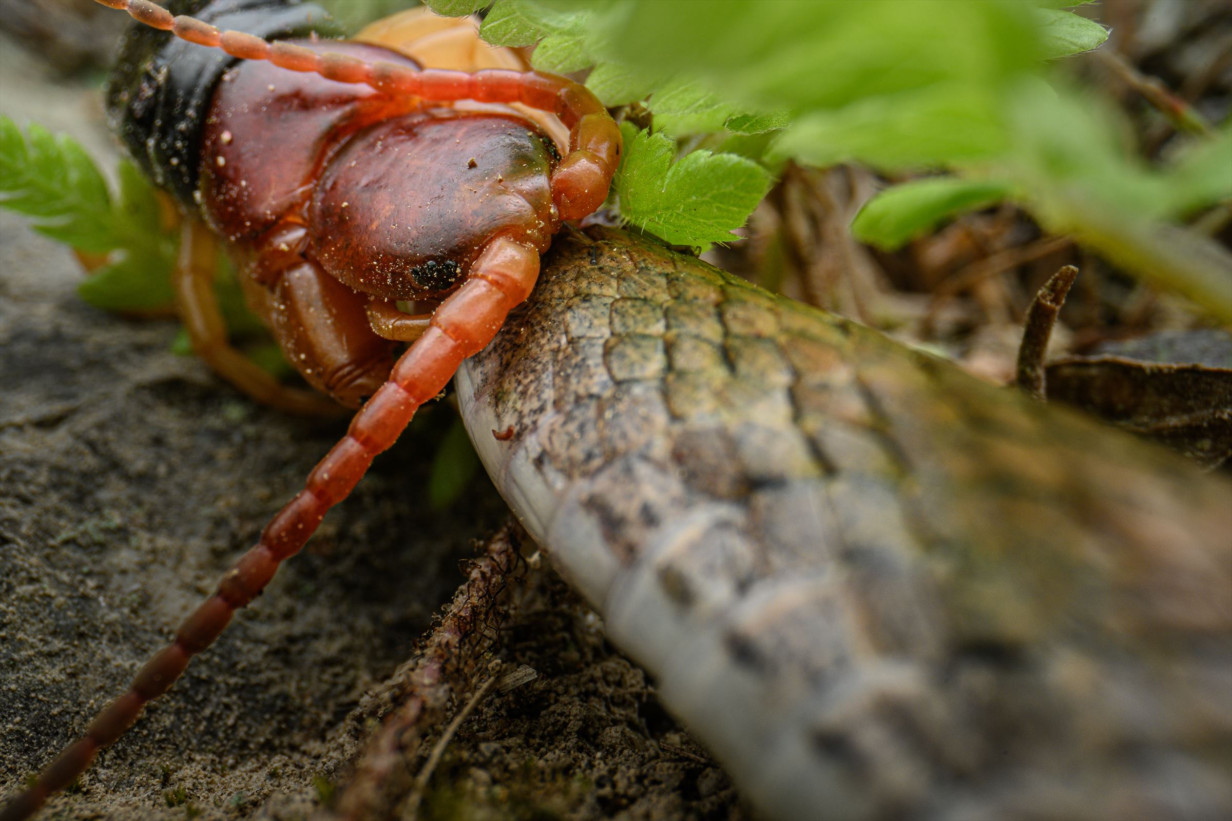 ぶっちゃけムカデにはなんの思い入れも無いし、蛇は好きだしと言う単なるえこひいきでちょろっと助けようかなーとか思わんでもなかったが、自然の流れに介入する理由も特にそれ以外思いつかんので、まあ…ね。うん。連れ帰るならともかくね。