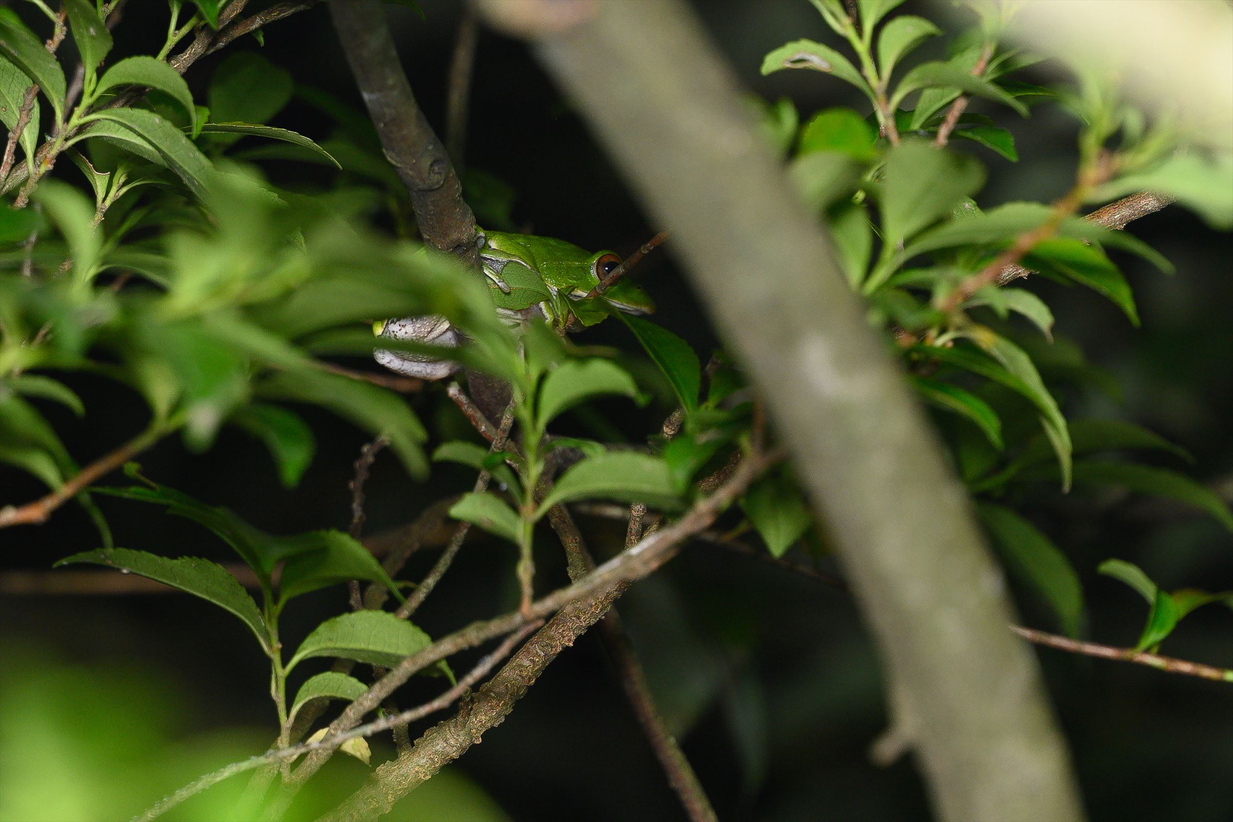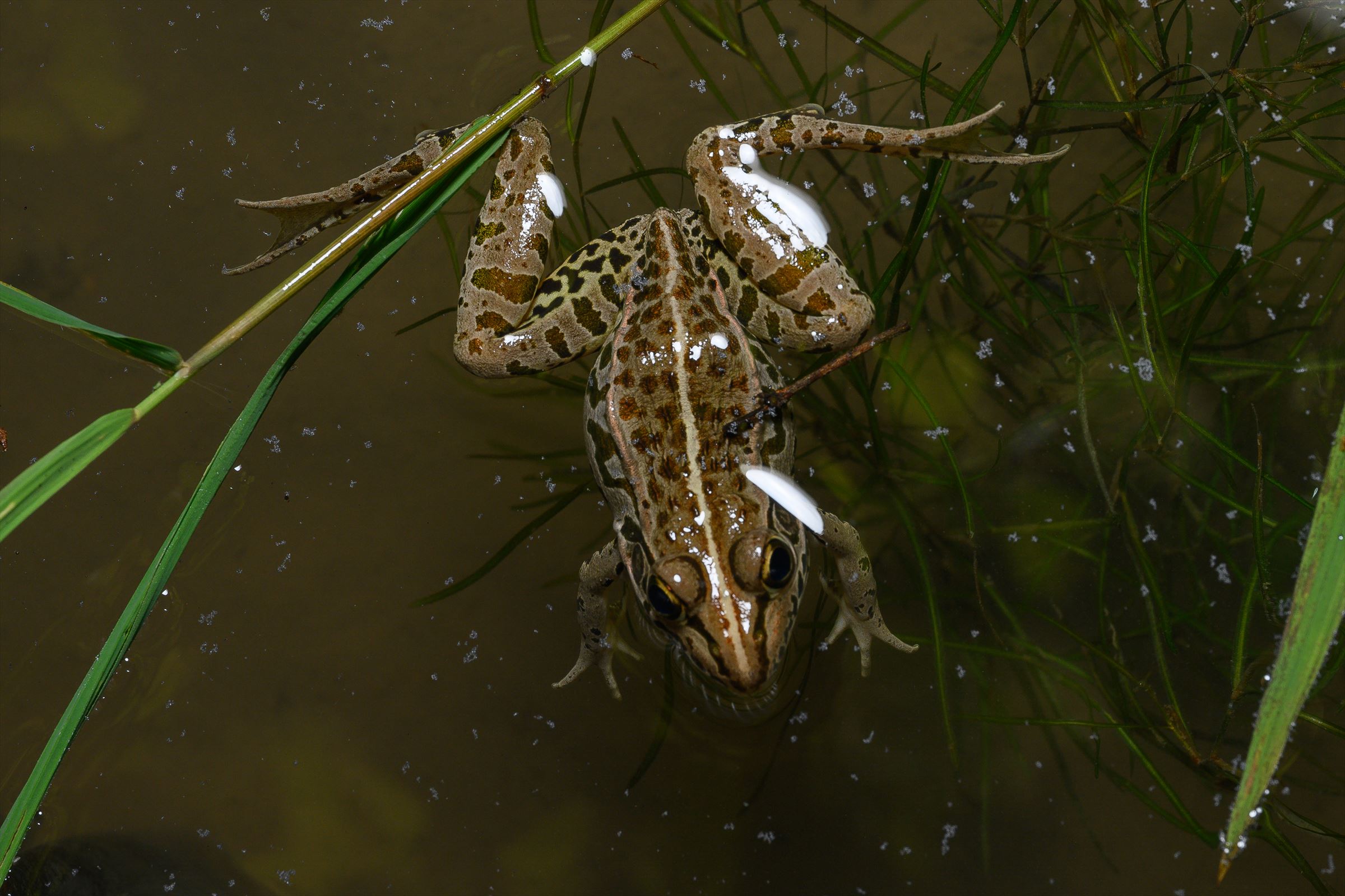 手の届く所で産卵していたモリアオ。