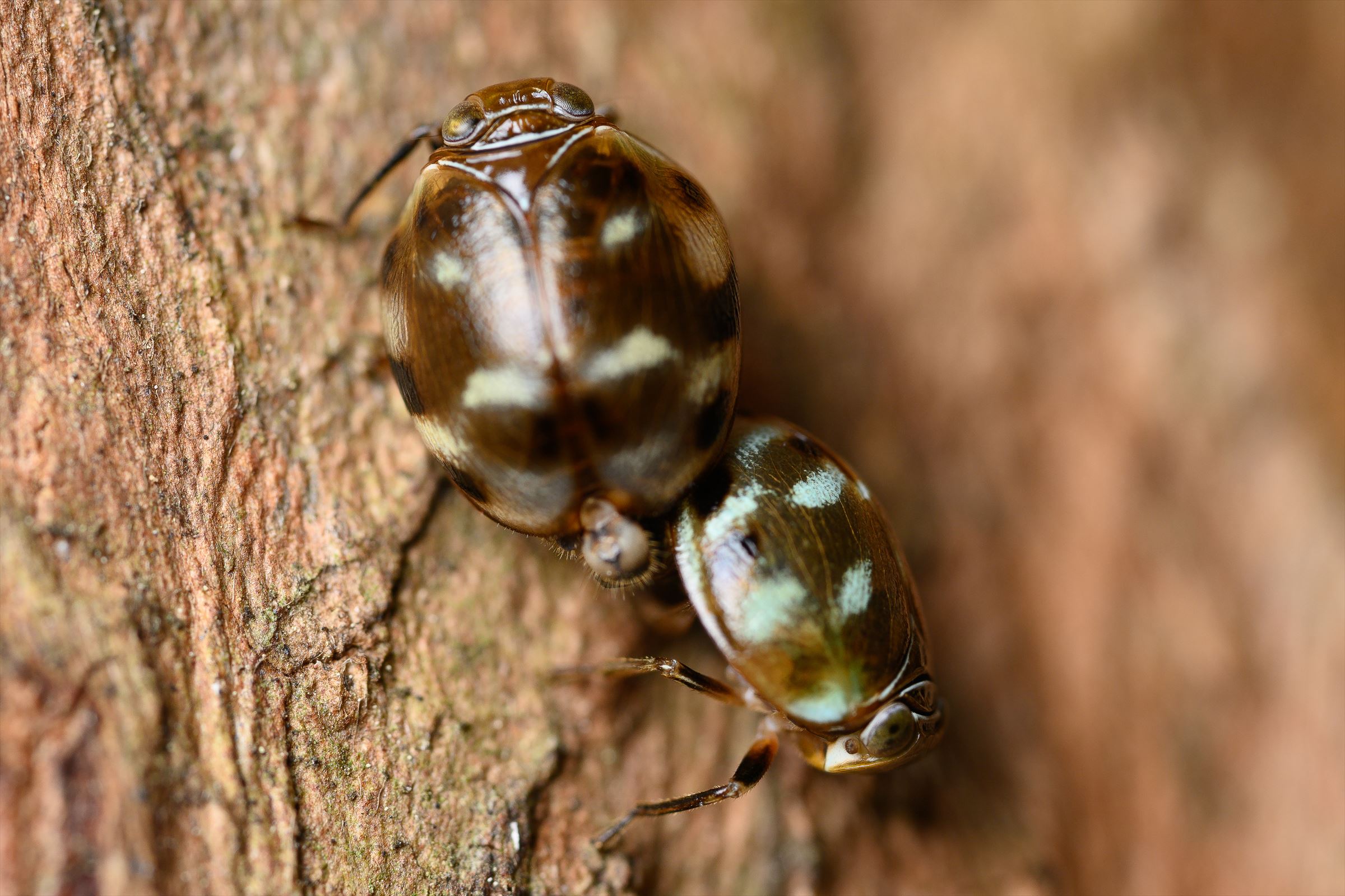 撮影中なんか顔がハゴロモとかのカメムシ系だよなーとは思ってたけど、フォルム的にはテントウムシとかハムシとかっぽくてなんやろなーと。