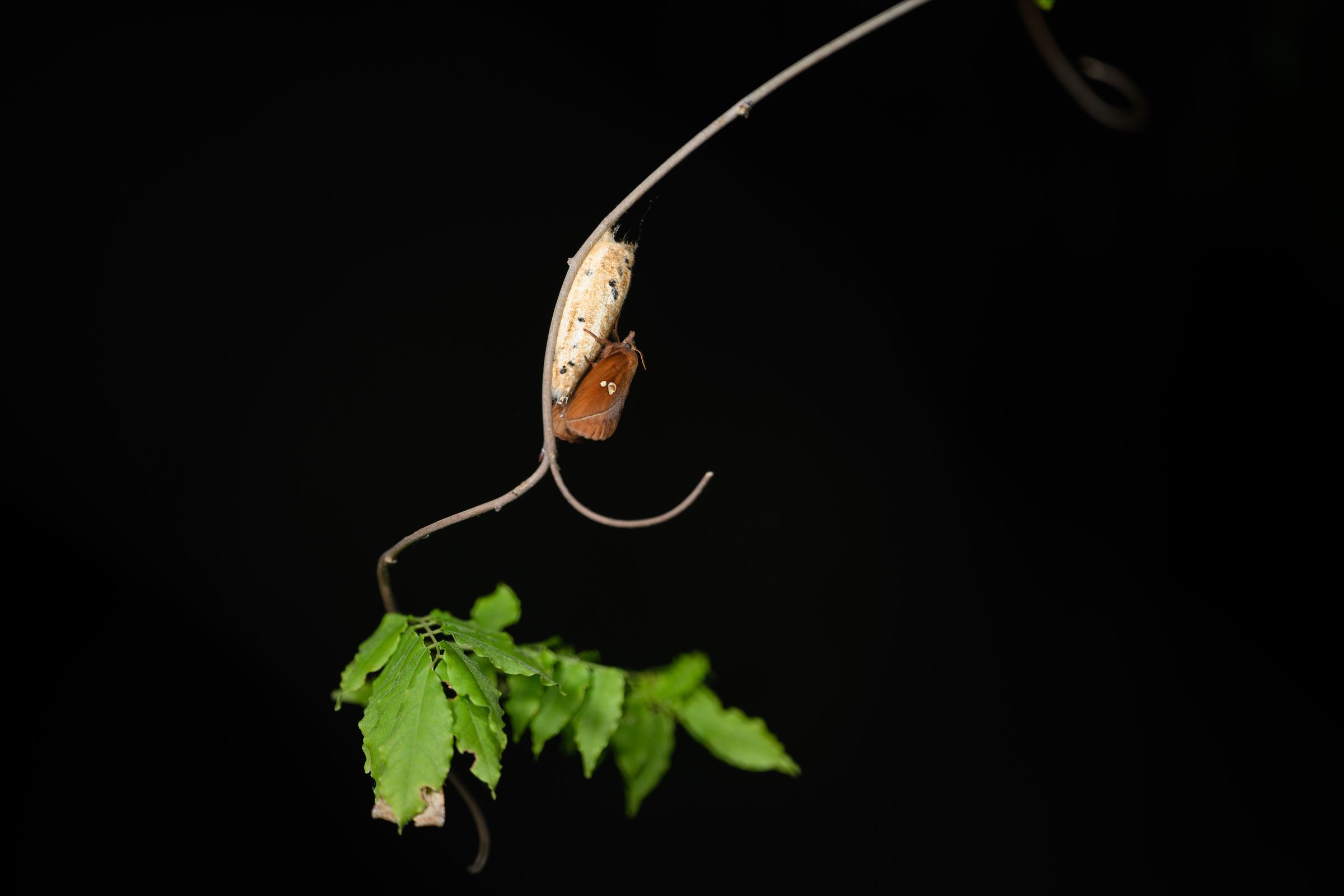溜池に垂れ下がったフジに繭付いているのは前々から知ってはいたが、中身出てた。