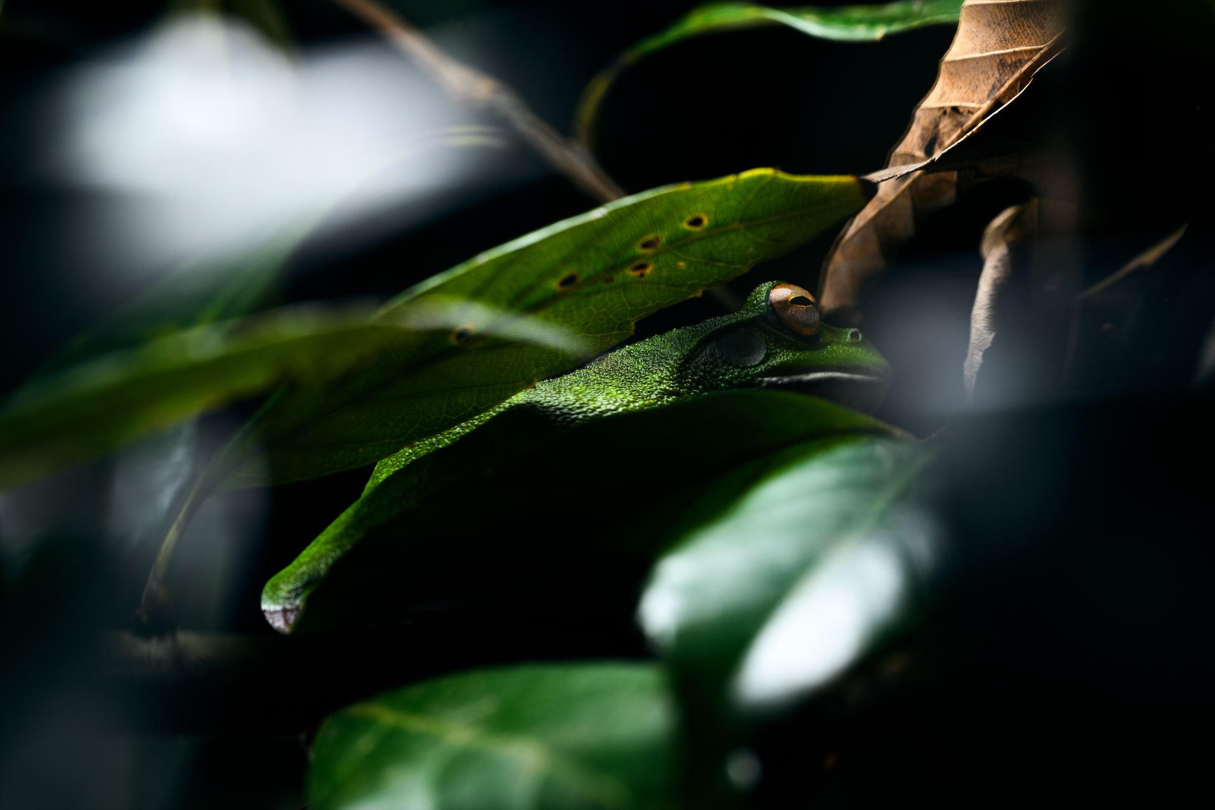 LED街灯の近くを登っていたモリアオ…ケツ。
