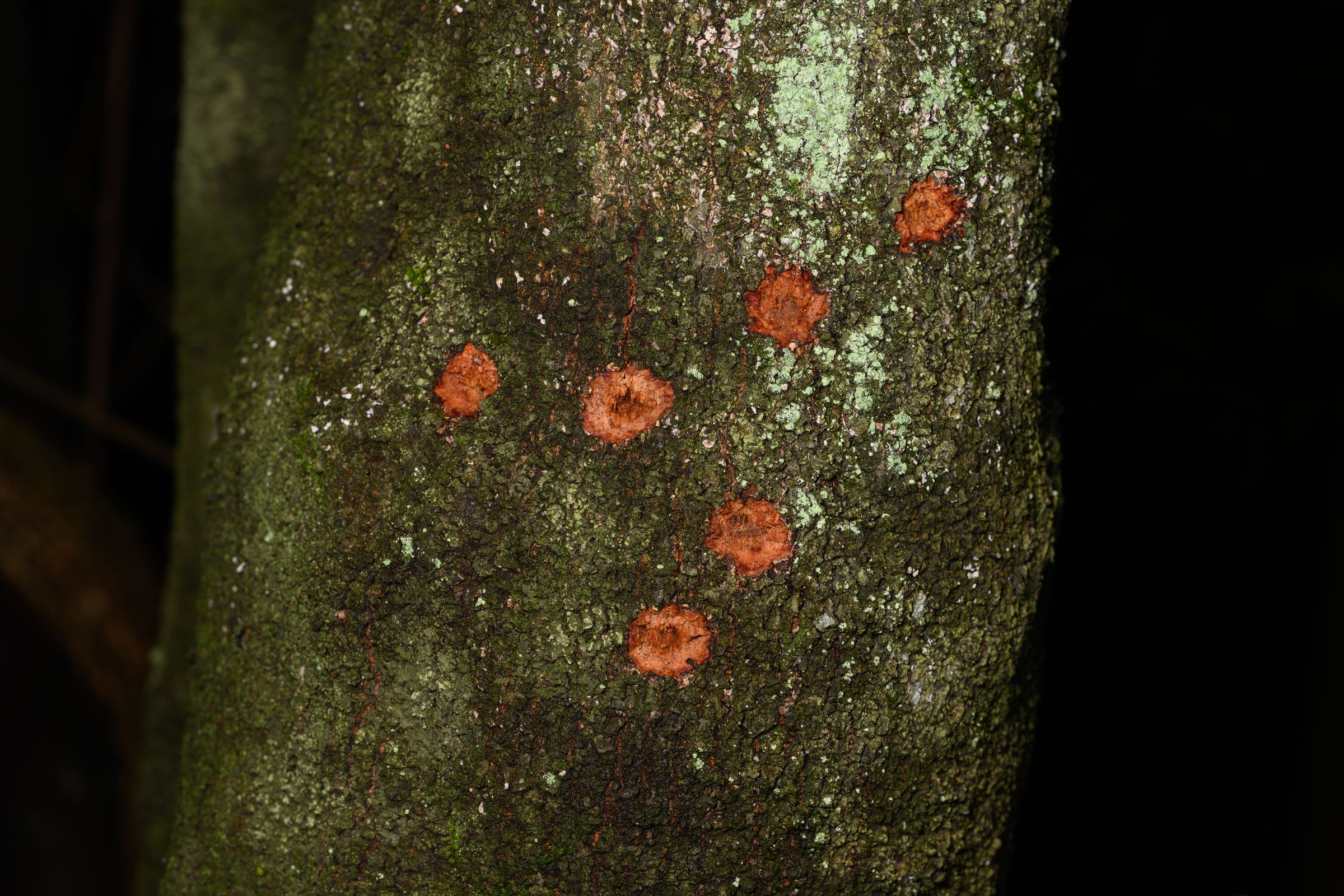 シロスジカミキリちゃん、あっちこっちにぼりぼり穴開けてるようだけど、この勢いでドカドカあけてたら木が死にそう。