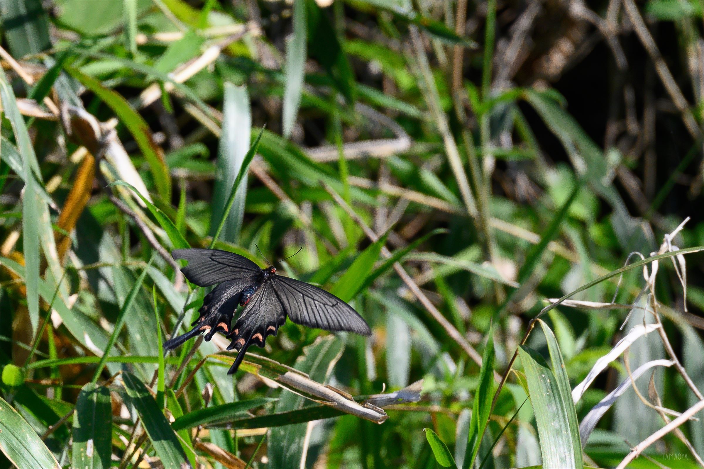 黒いアゲハは正直この組み合わせでは追えてる気がしなかったけれど、一応なんとか写ってはいた。