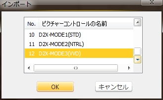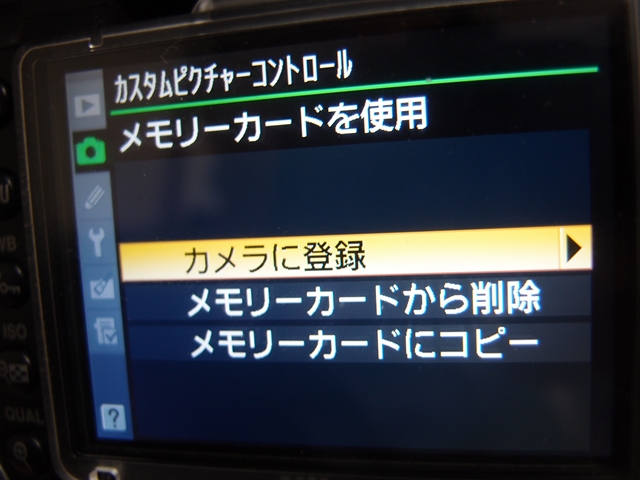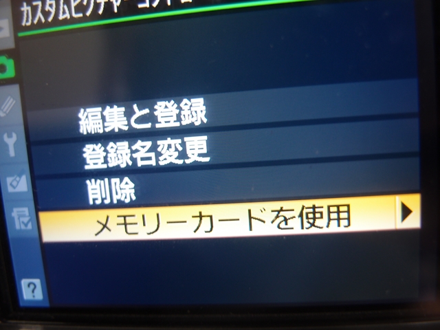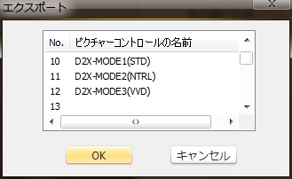 ピクチャーコントロールリストにD2XMODE1等の文字が見えるものの、選択してもエクスポートの項目はグレーアウトしたまま。そこでレベル調整を手動で少しパラメータ調整し、カスタムピクチャーコントロールとして保存してみた。(方法は割愛)