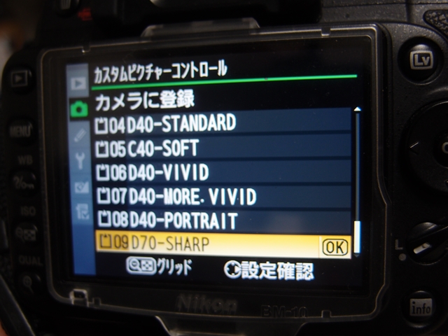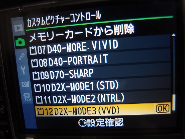 No.1〜9まではD100、D40、D70の近似設定を保存しているので、D2xの設定はNo.10〜12に登録した。