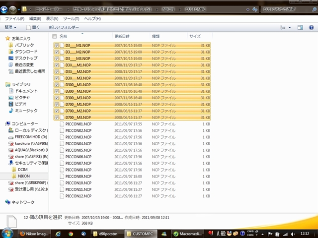 しっかり存在しているので、どうやらD90でこれらの設定ファイルを読み込む事は不可能らしい。