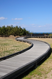 自転車道を数分てこてこ歩いていくと、海側へとつながる木道が見えてきた。