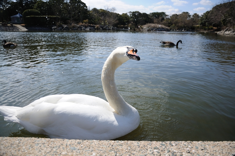 眼光鋭くなかなか強面なんですが、ここの個体はなんか錆びた自転車みたいな「ケ…ケェ…」と言う微妙な鳴き方をしてくれます。普通のコクチョウはもっとピィー!とかキィー!とか鳴くんですがw