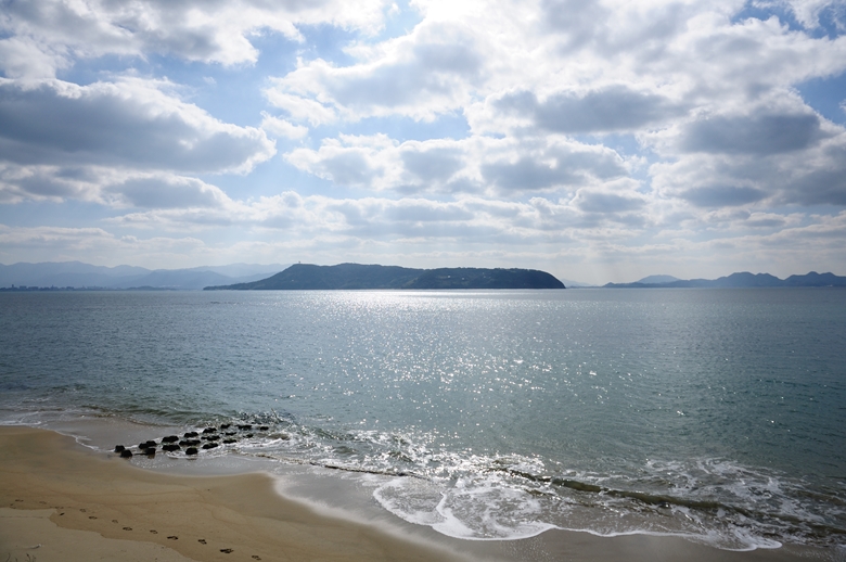 志賀島から北は玄界灘に浮かぶ祖島を拝む。