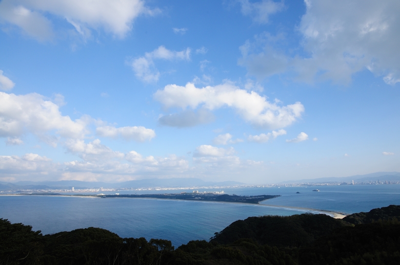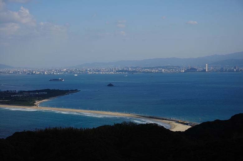 博多湾側と玄界灘側の海岸線が作るS字の陸繋砂洲が綺麗なんですが、できればもっと高い所から見たいですなぁ。