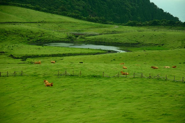遠くに牛ちゃん達が見える。これがあの美味しい美味しい赤牛さんだそうで。普段なら結構近くに牛が寄ってきたりするらしいのだが、この日ははるか遠くでぼんやりする赤牛。つくづく運がない。