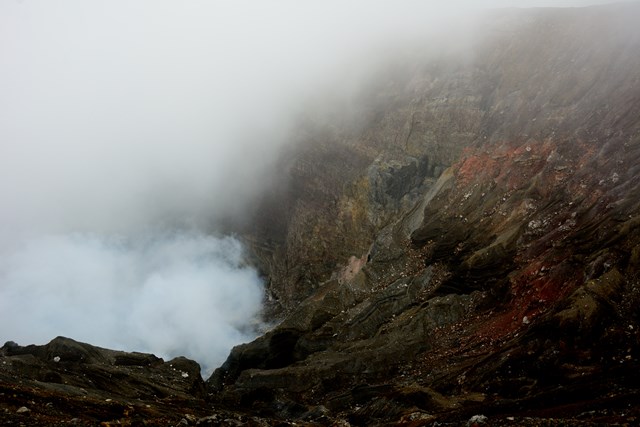 残念ながらエメラルドグリーンの火口湖も見えず。もくもく噴き出す煙と、厚い雲に覆われ視界が非常に悪い。ただまぁ火山らしいっちゃらしいのでこれはこれでアリかなぁ、と言った感じ。